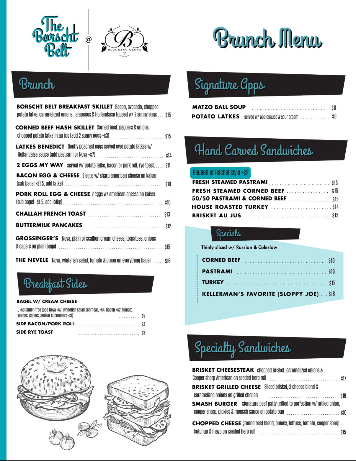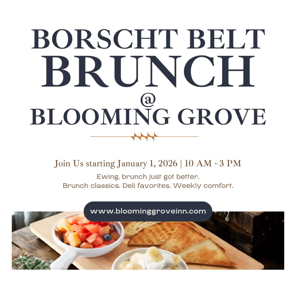 Every Wednesday through Sunday, enjoy the delicious brunch & lunch items of The Borscht Belt inside the cozy atmosphere of Blooming Grove Inn. Seating 10:00AM - 3:00PM. Reservations are now available; walk-ins are welcome. See menu below!